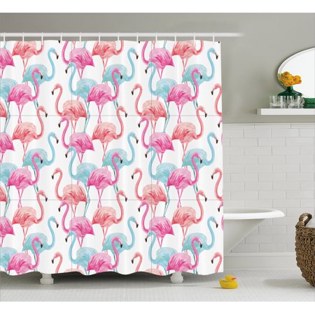 Watercolor Shower Curtain Flamingos In Many Colors Hand Drawn Bird