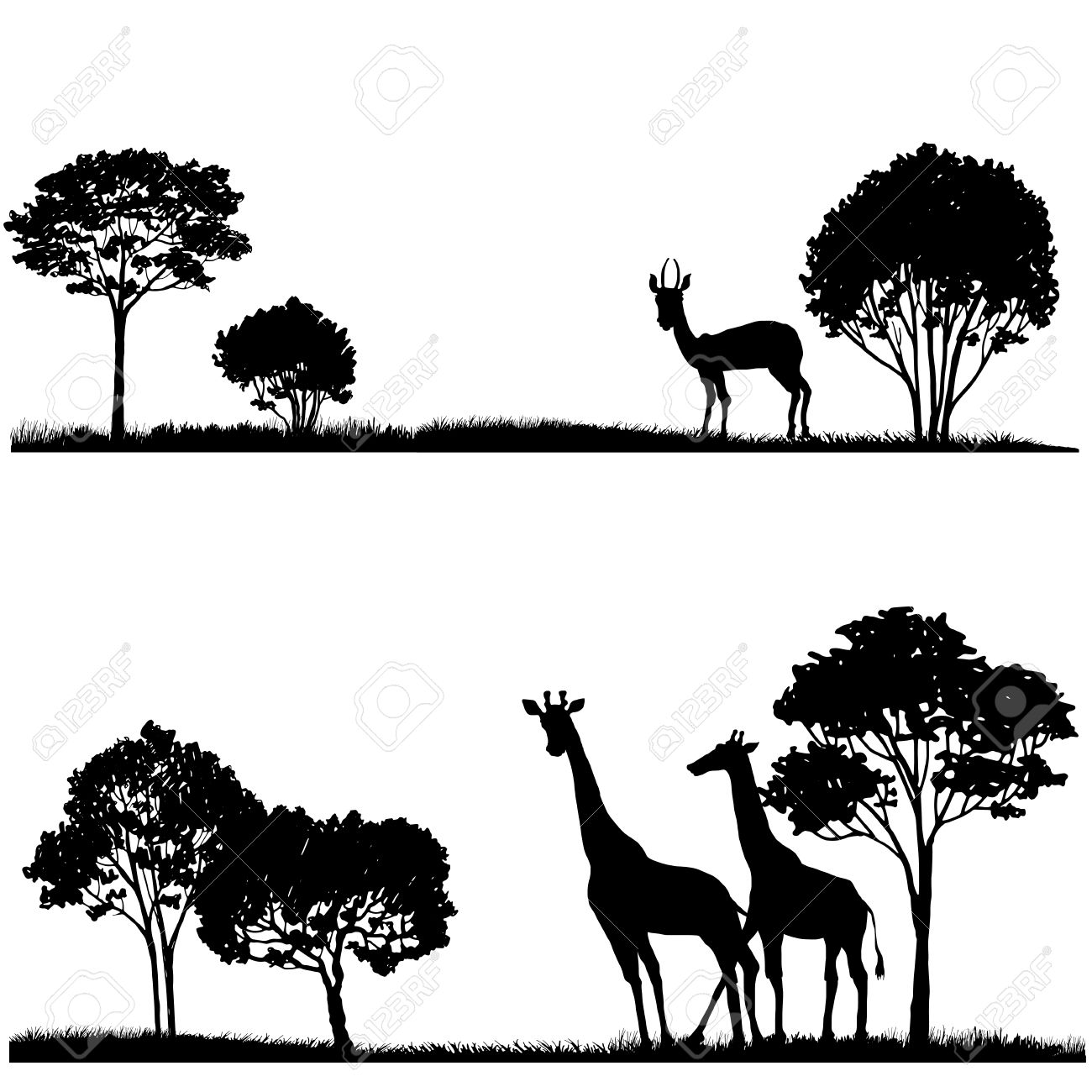 Set Of African Landscapes And Wild Animals Exotic Trees And Giraffes